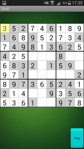 Sudoku is a logic-based, combinatorial number-placement puzzle. The objective is to fill a 9×9 grid with digits so that each column, each row, and each of the nine 3×3 sub-grids that compose the grid (also called boxes, blocks, regions, or sub-squares) contain all of the digits from 1 to 9.